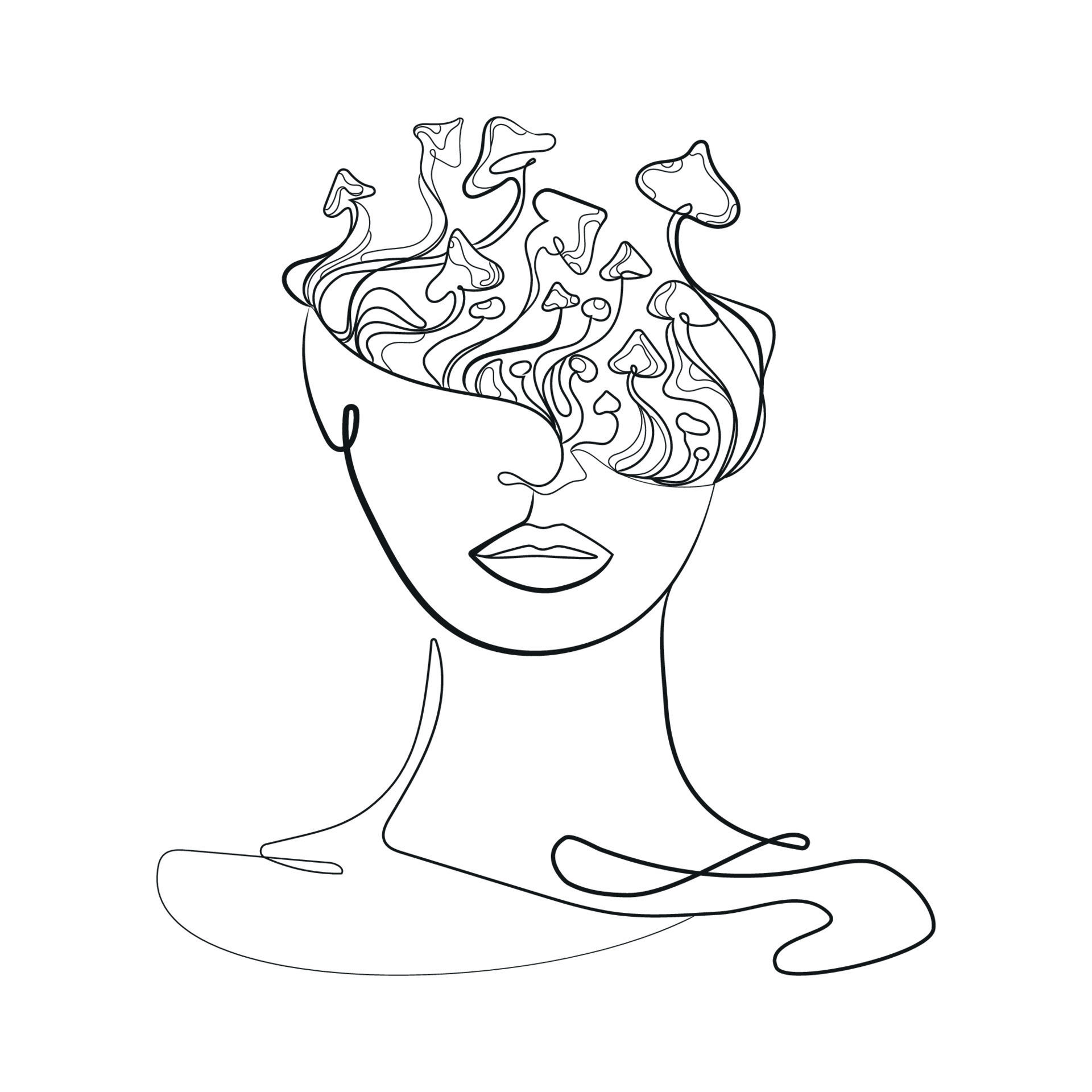 Abstract Woman Face With Mushrooms On Head Minimal Art Line Drawing Vector Illustration Psychodeoic Fantasy Drawing Of A Girl With Mushrooms Sketch For Logo Design T Shirt Print Tattoo Idea Emblem 10475015 Vector Art At Vecteezy